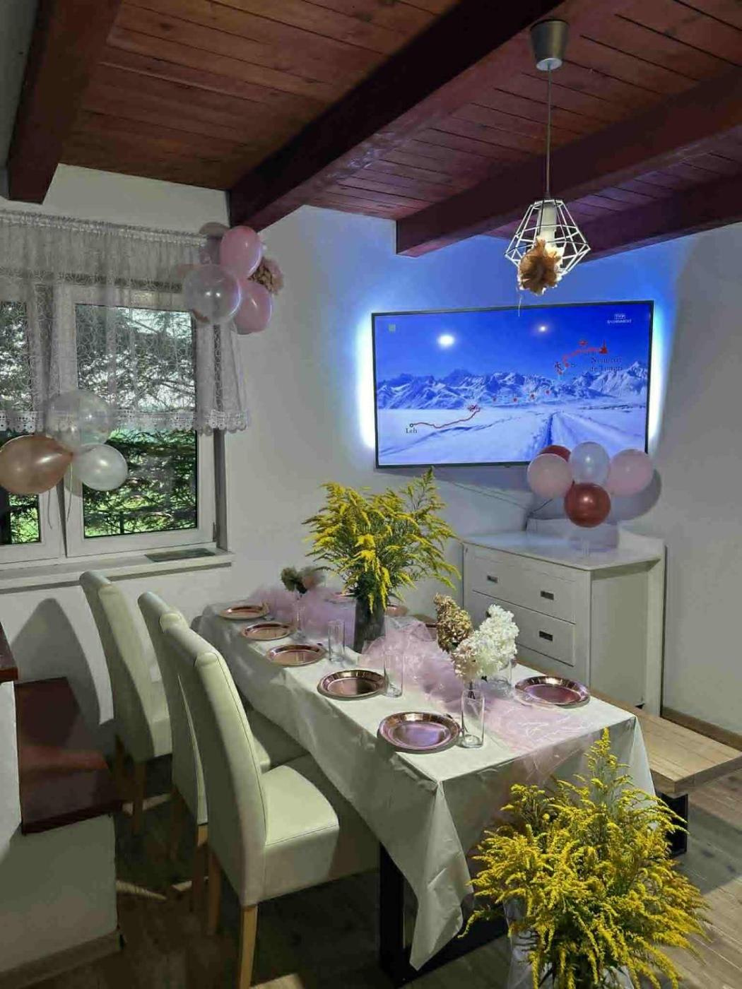 Domek z 5 sypialniami. This holiday home provides a hot tub. Guests will find a stovetop, a refrigerator and a microwave in the kitchen. The holiday home also provides guests with a barbecue. This holiday home includes a flat-screen TV with streaming services, a shared bathroom as well as a terrace with garden views. The unit offers 5 beds. Dom wakacyjny - 10 osobowy. Powierzchnia pokoju ok.: 100 mkw.
