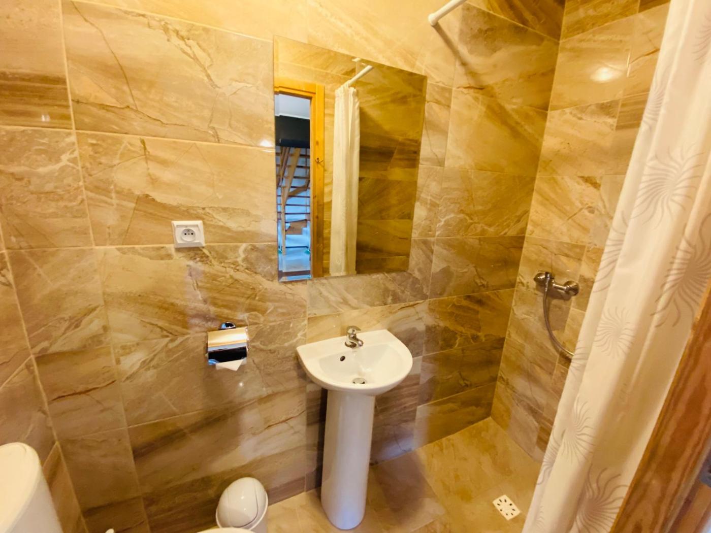 Domek z 3 sypialniami. This chalets special feature is the fireplace. Featuring a private entrance, this spacious chalet also consists of 1 living room, 3 separate bedrooms and 2 bathrooms with a shower. The fully equipped kitchen features a stovetop, a refrigerator, kitchenware and a microwave. Boasting a terrace with garden views, this chalet also provides soundproof walls and a flat-screen TV. The unit offers 9 beds. Domek - 9 osobowy. Powierzchnia pokoju ok.: 100 mkw.