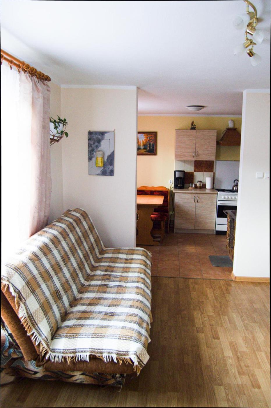 Dom z 2 sypialniami. The holiday home features 2 bedrooms, 1 bathroom and a kitchen. Guests can make meals in the fully equipped kitchen that has a refrigerator, kitchenware and an oven. This holiday home provides a flat-screen TV. The unit offers 6 beds. Dom wakacyjny - 9 osobowy. Powierzchnia pokoju ok.: 40 mkw.