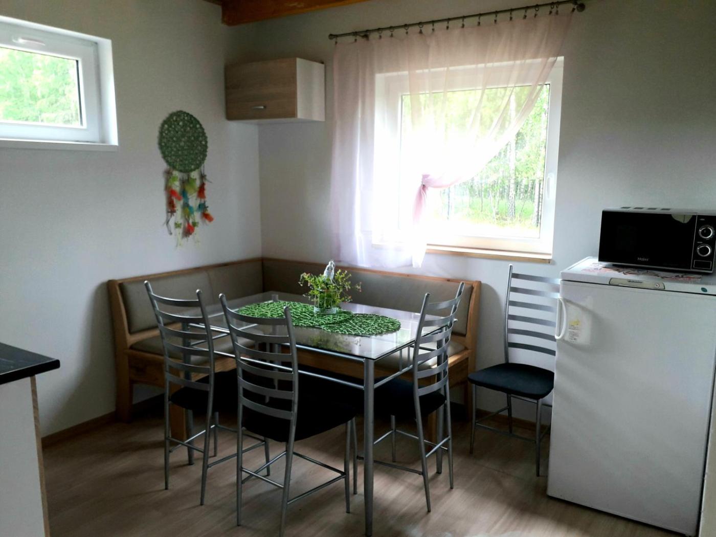 Dom wakacyjny. Boasting a private entrance, this holiday home comes with 1 living room, 3 separate bedrooms and 1 bathroom with a walk-in shower. Guests will find a stovetop, a refrigerator, kitchenware and a microwave in the well-fitted kitchenette. The holiday home also includes a barbecue. Featuring a terrace with lake views, this holiday home also features a seating area and a flat-screen TV. The unit has 2 beds and 5 futons. Dom wakacyjny - 9 osobowy. Powierzchnia pokoju ok.: 35 mkw.